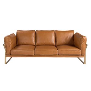 Canapea Chester cu 2 locuri din piele naturală maro închis. Atât pentru stilul său, cât și pentru picioarele sale din oțel inoxidabil, această canapea va aduce o notă de avangardă și eleganță pe care o cauți pentru casa ta.