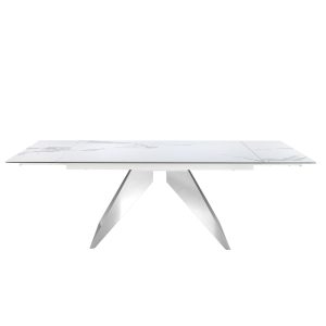Masă consolă modernă dreptunghiulară din lemn masiv cu furnir de nuc natural. Structura sa cu picioare din oțel inoxidabil cromat oferă o notă modernă si avangardistă pe care o cauți pentru casa ta.