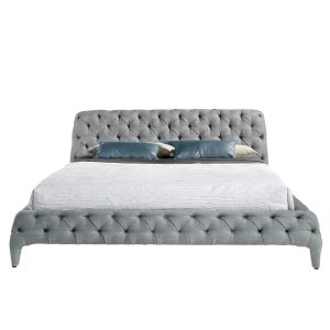 Pat dublu Angel Cerdá – design modern, furnir nuc natural și tapițerie textilă gri