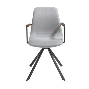 Scaun cu cotiere și design modern, tapițat cu stofă gri. Picioarele sunt din oțel inoxidabil negru, cu un stil avangardist dar atemporal. Acest scaun de Angel Cerdá combină stilul unic și personal al mărcii, precum și cel mai înalt confort și stabilitate, datorită calității înalte a tapițeriei și structurii originale a picioarelor sale.